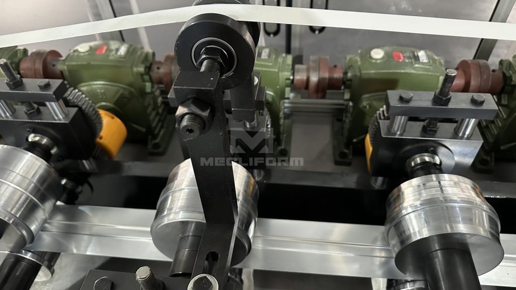 Roll former is used to create uniform, continuous bends in metal materials. It works by passing a strip of material through a series of rollers that gradually bend and form the material into its desired shape. 辊压成型机用于在金属材料上形成均匀、连续的弯曲。其工作原理是将金属带材依次通过多组轧辊,通过渐进式弯曲使材料成型为所需形状。