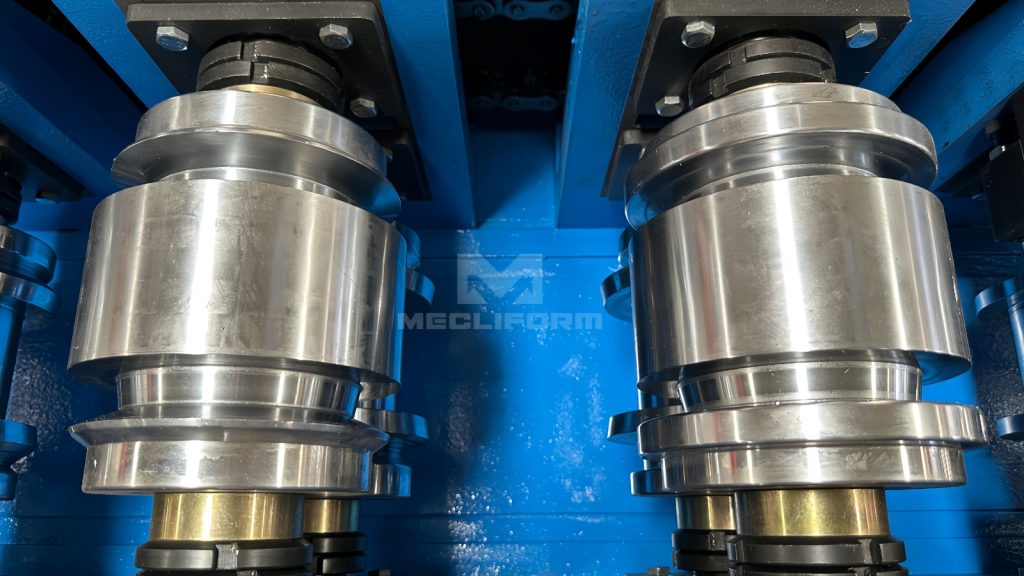 Roll former is used to create uniform, continuous bends in metal materials. It works by passing a strip of material through a series of rollers that gradually bend and form the material into its desired shape. 辊压成型机用于在金属材料上形成均匀、连续的弯曲。其工作原理是将金属带材依次通过多组轧辊,通过渐进式弯曲使材料成型为所需形状。