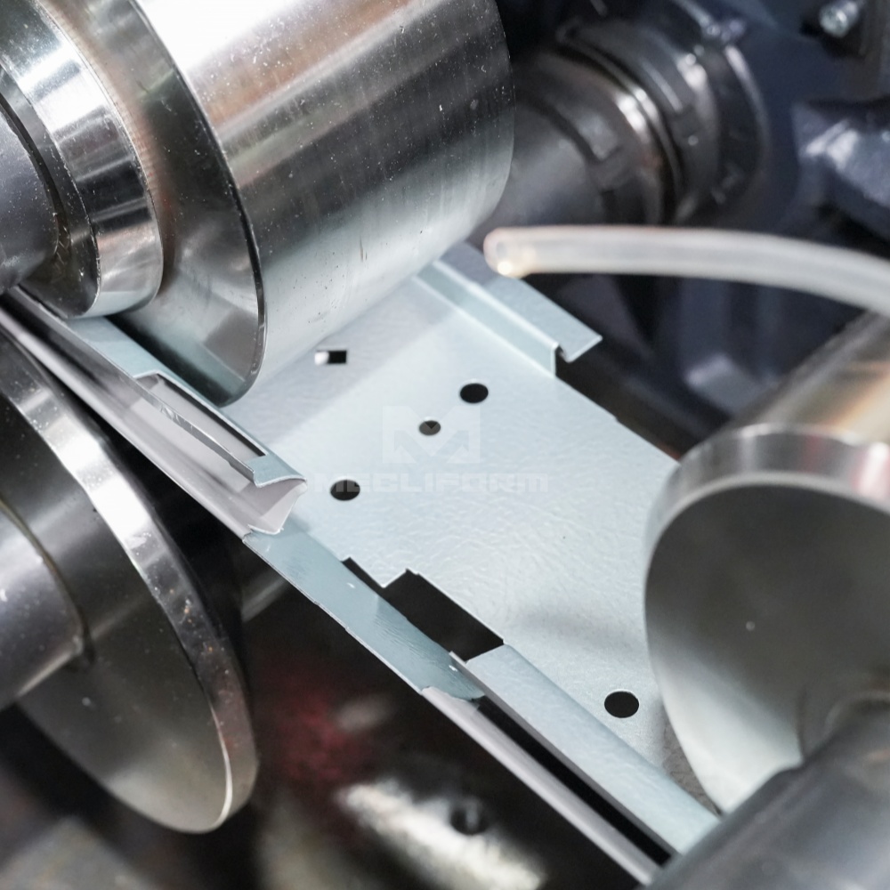 Roll former is used to create uniform, continuous bends in metal materials. It works by passing a strip of material through a series of rollers that gradually bend and form the material into its desired shape. 辊压成型机用于在金属材料上形成均匀、连续的弯曲。其工作原理是将金属带材依次通过多组轧辊,通过渐进式弯曲使材料成型为所需形状。