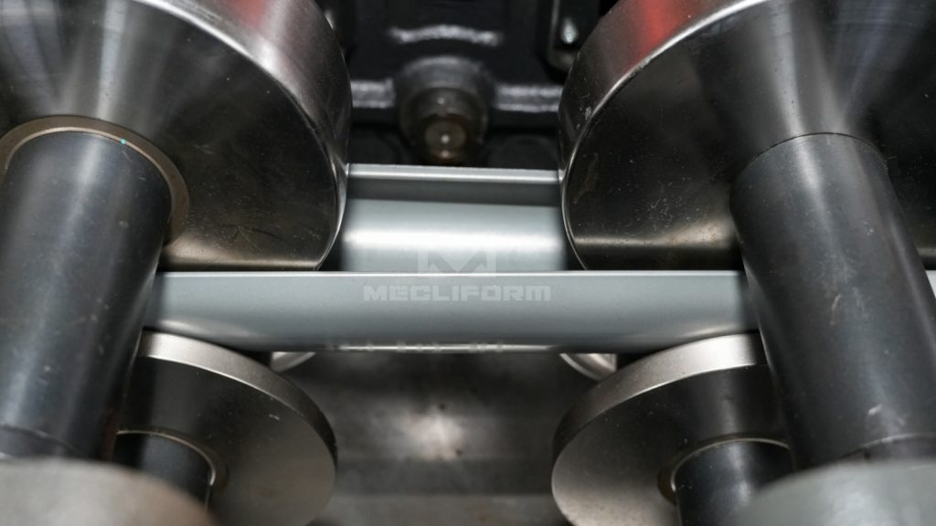Roll former is used to create uniform, continuous bends in metal materials. It works by passing a strip of material through a series of rollers that gradually bend and form the material into its desired shape. 辊压成型机用于在金属材料上形成均匀、连续的弯曲。其工作原理是将金属带材依次通过多组轧辊,通过渐进式弯曲使材料成型为所需形状。