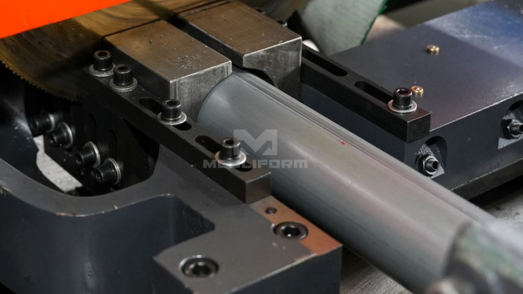 Saw cutting unit is used for cutting closed profiles. This unit typically consists of a sharp disc that rotates at high speed to make precise and clean cuts through the material. 锯切机构专用于闭口型材的切割加工,该装置通常配备高速旋转的锋利圆锯片,可实现材料的精密切割并确保切口光洁平整。