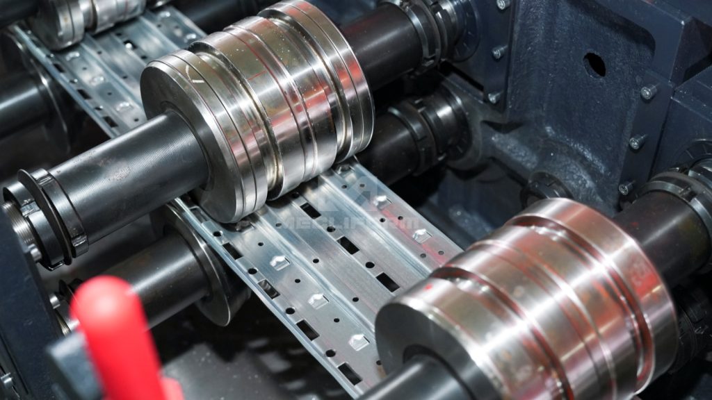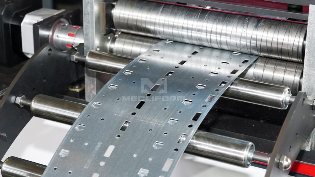 Punching unit is used to punch holes before roll forming. It typically consists of a metal tool that is propelled with force through the material to create the desired hole or shape. 冲孔装置用于在辊压成型前进行冲孔加工。该装置通常由冲孔模具构成,通过机械冲床或液压动力,从而形成所需的功能孔或特定形状。
