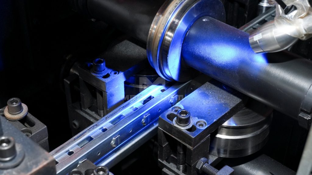 Saw cutting unit is used for cutting closed profiles. This unit typically consists of a sharp disc that rotates at high speed to make precise and clean cuts through the material. 锯切机构专用于闭口型材的切割加工,该装置通常配备高速旋转的锋利圆锯片,可实现材料的精密切割并确保切口光洁平整。